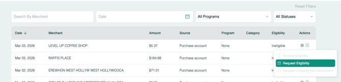 - If a purchase is not automatically marked as eligible, you can request an eligibility review