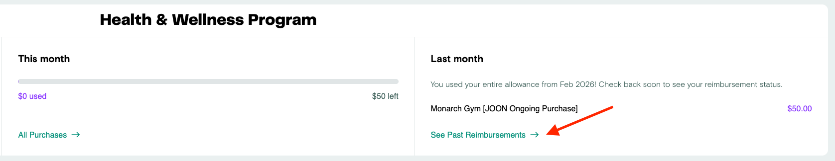 - Once logged into JOON, click on See Past reimbursements from within any of your benefits programs.